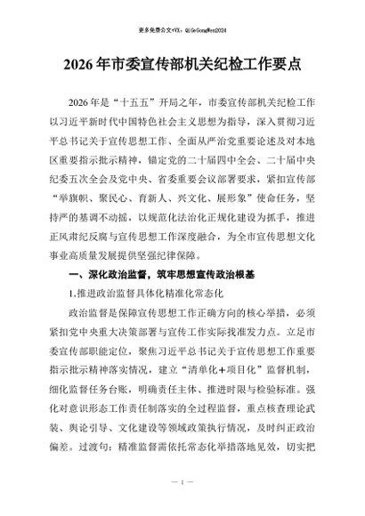 / 【七哥公文】2026年:2026年市委宣传部机关纪检工作要点+更多免费公文+VX:QiGeGongWen2024