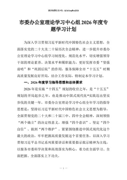 / 【七哥公文】2026年:市委办公室理论学习中心组2026年度专题学习计划+更多免费公文+VX:QiGeGongWen2024