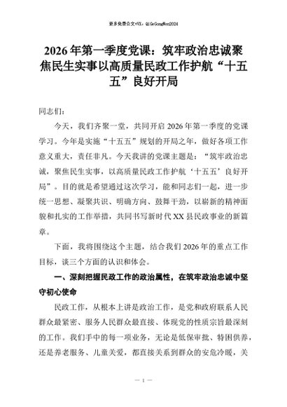 【七哥公文】2026年:2026年第一季度党课:筑牢政治忠诚聚焦民生实事以高质量民政工作护航“十五五”良好开局+更多免费公文+VX:QiGeGongWen2024
