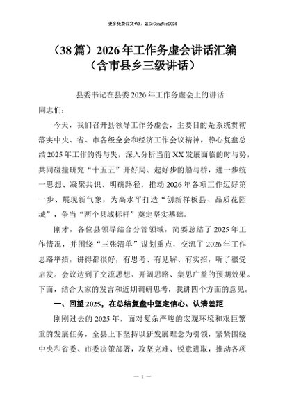 【七哥公文】2026年:(38篇)2026年工作务虚会讲话汇编(含市县乡三级讲话)+更多免费公文+VX:QiGeGongWen2024