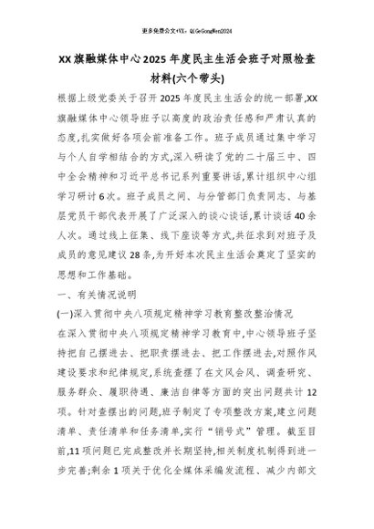 【七哥公文】2026年:XX旗融媒体中心2025年度民主生活会班子对照检查材料(六个带头)_副本+更多免费公文+VX:QiGeGongWen2024