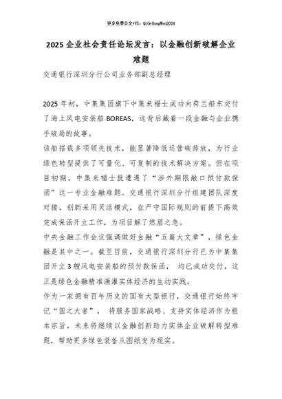 【七哥公文】2026年:2025企业社会责任论坛发言:以金融创新破解企业难题_副本+更多免费公文+VX:QiGeGongWen2024