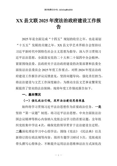 / 【七哥公文】2026年:XX县文联2025年度法治政府建设工作报告+更多免费公文+VX:QiGeGongWen2024