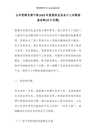 【七哥公文】2026年:公司党群支部干部2025年度组织生活会个人对照检查材料(五个对照)_副本+更多免费公文+VX:QiGeGongWen2024