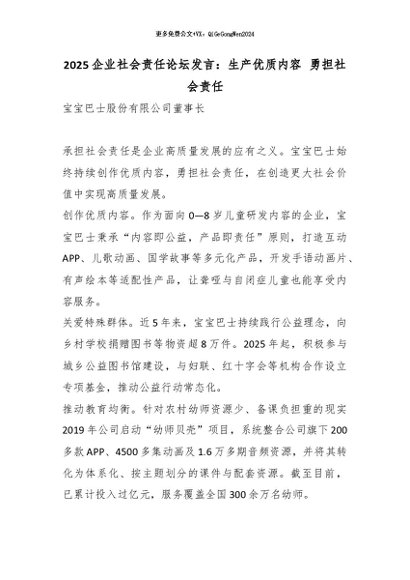 【七哥公文】2026年:2025企业社会责任论坛发言:生产优质内容 勇担社会责任_副本+更多免费公文+VX:QiGeGongWen2024