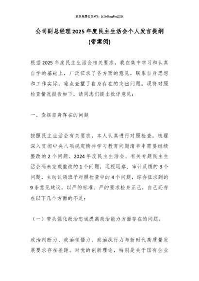 【七哥公文】2026年:公司副总经理2025年度民主生活会个人发言提纲(带案例)_副本+更多免费公文+VX:QiGeGongWen2024
