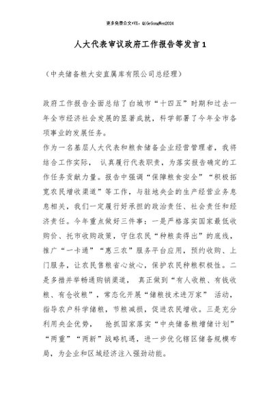 / 【七哥公文】2026年:人大代表审议政府工作报告等发言1_副本+更多免费公文+VX:QiGeGongWen2024