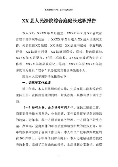 / 【七哥公文】2026年:XX县人民法院综合庭庭长述职报告+更多免费公文+VX:QiGeGongWen2024