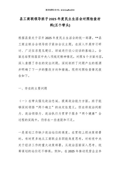 【七哥公文】2026年:县工商联领导班子2025年度民主生活会对照检查材料(五个带头)_副本+更多免费公文+VX:QiGeGongWen2024