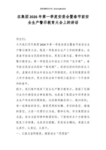 【七哥公文】2026年:在集团2026年第一季度安委会暨春节前安全生产警示教育大会上的讲话_副本+更多免费公文+VX:QiGeGongWen2024