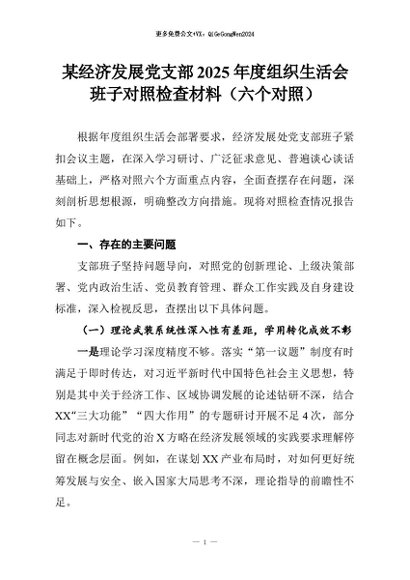 【七哥公文】2026年:某经济发展党支部2025年度组织生活会班子对照检查材料(六个对照)+更多免费公文+VX:QiGeGongWen2024