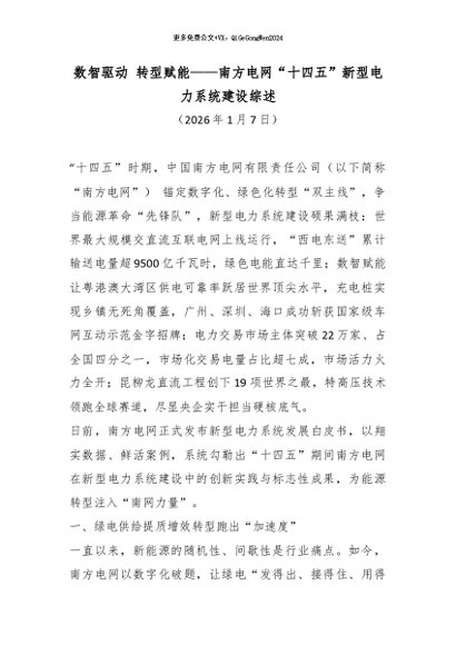 【七哥公文】2026年:数智驱动 转型赋能——南方电网“十四五”新型电力系统建设综述_副本+更多免费公文+VX:QiGeGongWen2024