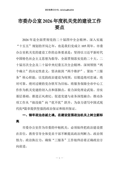 / 【七哥公文】2026年:市委办公室2026年度机关党的建设工作要点+更多免费公文+VX:QiGeGongWen2024