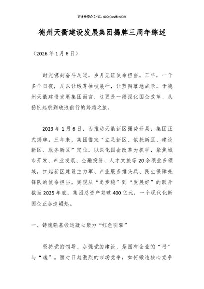 / 【七哥公文】2026年:德州天衢建设发展集团揭牌三周年综述_副本+更多免费公文+VX:QiGeGongWen2024
