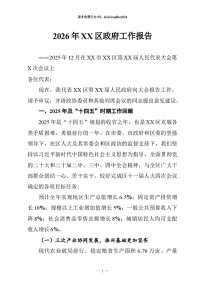 / 【七哥公文】2026年:2026年XX区政府工作报告+更多免费公文+VX:QiGeGongWen2024