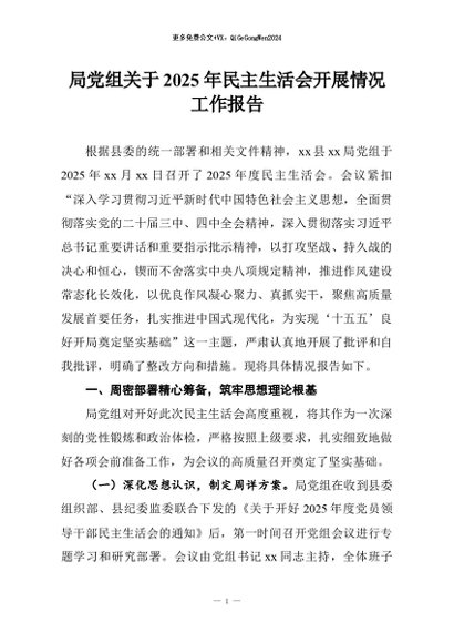 / 【七哥公文】2026年:局党组关于2025年民主生活会开展情况工作报告+更多免费公文+VX:QiGeGongWen2024