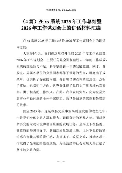 【七哥公文】2026年:(4篇)在xx系统2025年工作总结暨2026年工作谋划会上的讲话材料汇编+更多免费公文+VX:QiGeGongWen2024