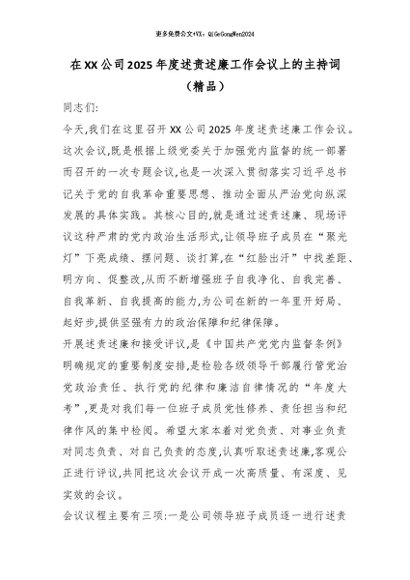 【七哥公文】2026年:在XX公司2025年度述责述廉工作会议上的主持词(精品)_副本+更多免费公文+VX:QiGeGongWen2024