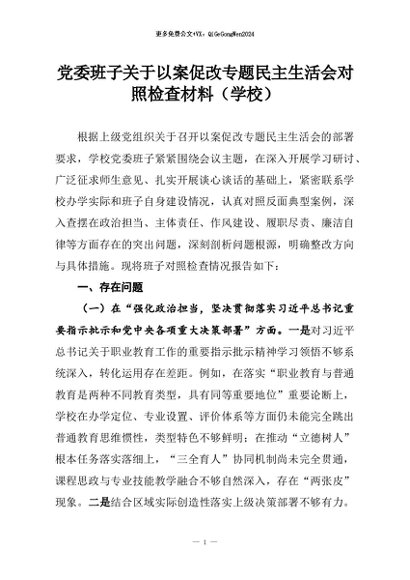 【七哥公文】2026年:党委班子关于以案促改专题民主生活会对照检查材料(学校)+更多免费公文+VX:QiGeGongWen2024