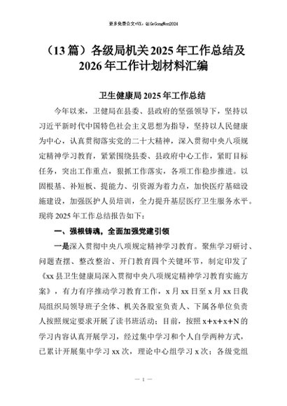 【七哥公文】2026年:(13篇)各级局机关2025年工作总结及2026年工作计划材料汇编+更多免费公文+VX:QiGeGongWen2024