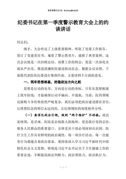 / 【七哥公文】2026年:纪委书记在第一季度警示教育大会上的约谈讲话+更多免费公文+VX:QiGeGongWen2024