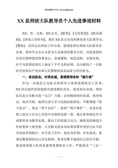 【七哥公文】2026年:XX县刑侦大队教导员个人先进事迹材料+更多免费公文+VX:QiGeGongWen2024