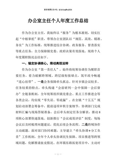 / 【七哥公文】2026年:办公室主任个人年度工作总结+更多免费公文+VX:QiGeGongWen2024