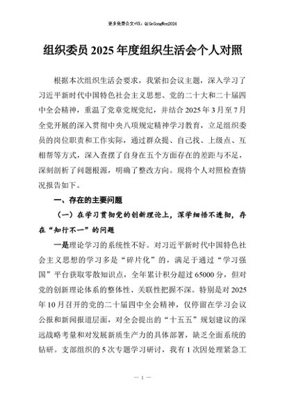 / 【七哥公文】2026年:组织委员2025年度组织生活会个人对照+更多免费公文+VX:QiGeGongWen2024