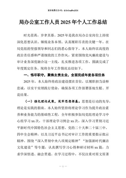 / 【七哥公文】2026年:局办公室工作人员2025年个人工作总结+更多免费公文+VX:QiGeGongWen2024