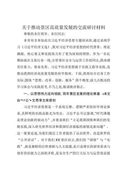 【七哥公文】2025年:关于推动景区高质量发展的交流研讨发言材料+更多免费公文+VX:QiGeGongWen2024