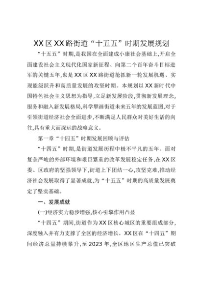 / 【七哥公文】2025年:XX区XX路街道“十五五”时期发展规划+更多免费公文+VX:QiGeGongWen2024
