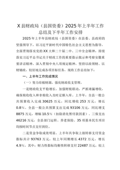 【七哥公文】2025年:X县财政局(县国资委)2025年上半年工作总结及下半年工作安排+更多免费公文+VX:QiGeGongWen2024
