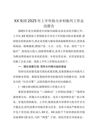 【七哥公文】2025年:XX集团2025年上半年助力乡村振兴工作总结报告+更多免费公文+VX:QiGeGongWen2024