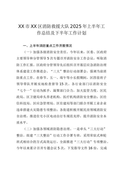 【七哥公文】2025年:XX市XX区消防救援大队2025年上半年工作总结及下半年工作计划+更多免费公文+VX:QiGeGongWen2024