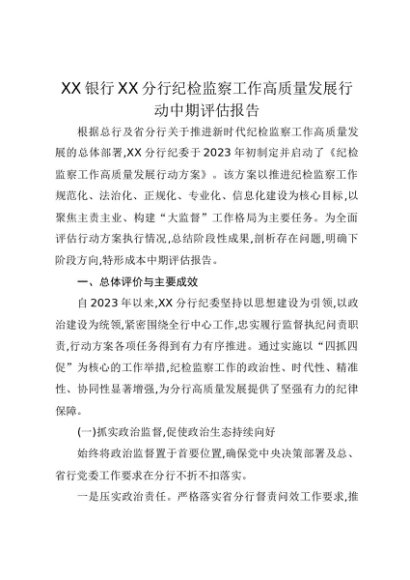 【七哥公文】2025年:XX银行XX分行纪检监察工作高质量发展行动中期评估报告+更多免费公文+VX:QiGeGongWen2024