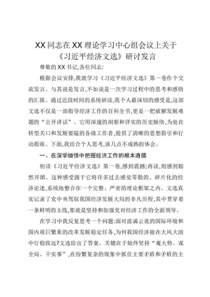 【七哥公文】2025年:XX同志在XX理论学习中心组会议上关于《习近平经济文选》研讨发言+更多免费公文+VX:QiGeGongWen2024
