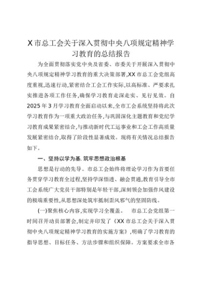 【七哥公文】2025年:X市总工会关于深入贯彻中央八项规定精神学习教育的总结报告+更多免费公文+VX:QiGeGongWen2024