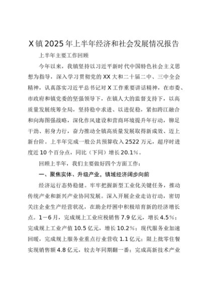 / 【七哥公文】2025年:X镇2025年上半年经济和社会发展情况报告+更多免费公文+VX:QiGeGongWen2024