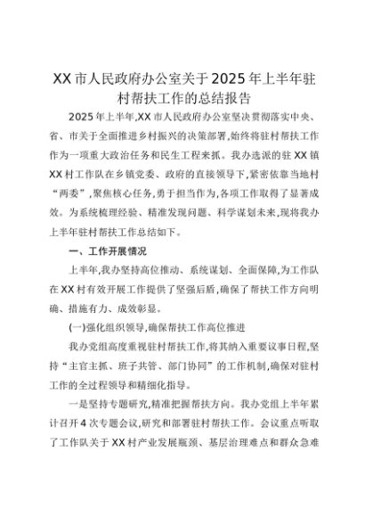 【七哥公文】2025年:XX市人民政府办公室关于2025年上半年驻村帮扶工作的总结报告+更多免费公文+VX:QiGeGongWen2024