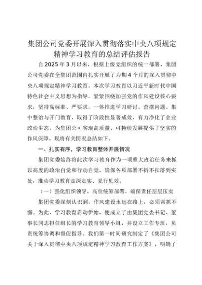 【七哥公文】2025年:集团公司党委开展深入贯彻落实中央八项规定精神学习教育的总结评估报告+更多免费公文+VX:QiGeGongWen2024