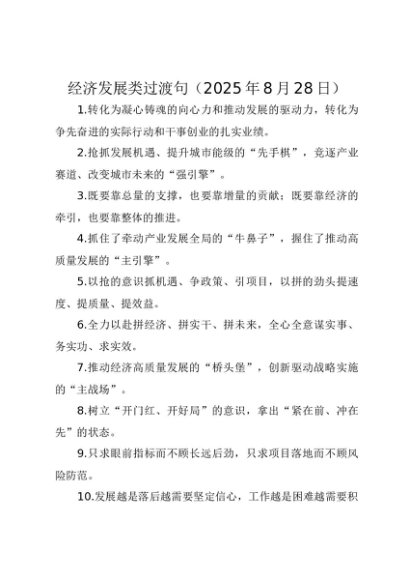 / 【七哥公文】2025年:经济发展类过渡句(2025年8月28日)+更多免费公文+VX:QiGeGongWen2024