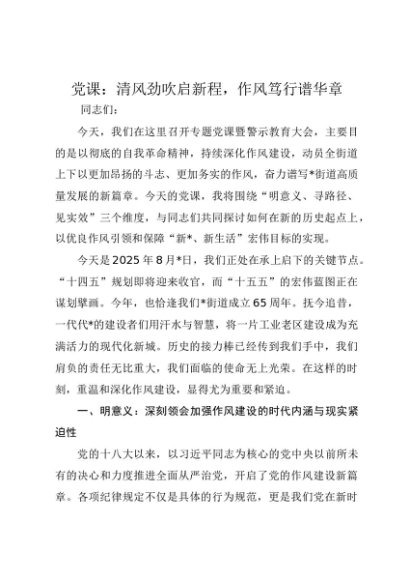 / 【七哥公文】2025年:党课讲稿:清风劲吹启新程,作风笃行谱华章+更多免费公文+VX:QiGeGongWen2024