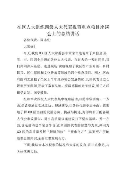 【七哥公文】2025年:在区人大组织四级人大代表视察重点项目座谈会上的总结讲话+更多免费公文+VX:QiGeGongWen2024