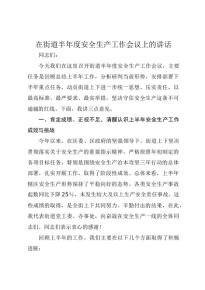 / 【七哥公文】2025年:在街道半年度安全生产工作会议上的讲话+更多免费公文+VX:QiGeGongWen2024