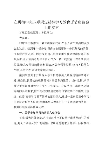 【七哥公文】2025年:在贯彻中央八项规定精神学习教育评估座谈会上的发言+更多免费公文+VX:QiGeGongWen2024