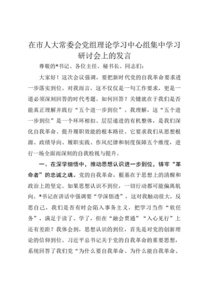 【七哥公文】2025年:在市人大常委会党组理论学习中心组集中学习研讨会上的发言+更多免费公文+VX:QiGeGongWen2024