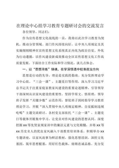 【七哥公文】2025年:在理论中心组贯彻中央八项规定精神学习教育专题研讨会的交流发言+更多免费公文+VX:QiGeGongWen2024