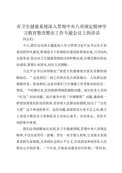 【七哥公文】2025年:在卫生健康系统深入贯彻中央八项规定精神学习教育整改整治工作专题会议上的讲话+更多免费公文+VX:QiGeGongWen2024