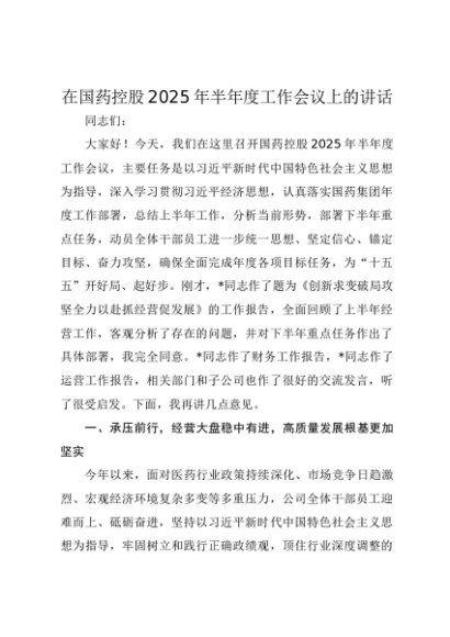 / 【七哥公文】2025年:在国药控股2025年半年度工作会议上的讲话+更多免费公文+VX:QiGeGongWen2024