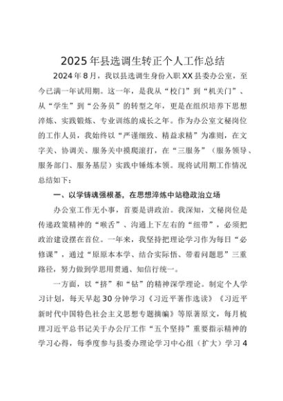 / 【七哥公文】2025年:2025年县选调生转正个人工作总结+更多免费公文+VX:QiGeGongWen2024